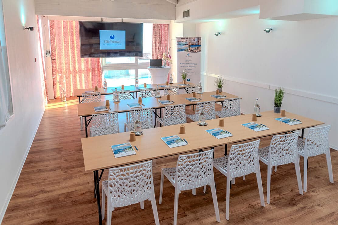 Notre hôtel quatre étoiles vous accueille toute l’année, le temps de votre séminaire ou même d’une journée. Directement intégré à notre complexe thalasso, il est composé de 84 chambres, pouvant accueillir de 1 à 4 personnes. Des chambres vue mer avec terrasse, toutes équipées de lits électriques au confort incomparable.