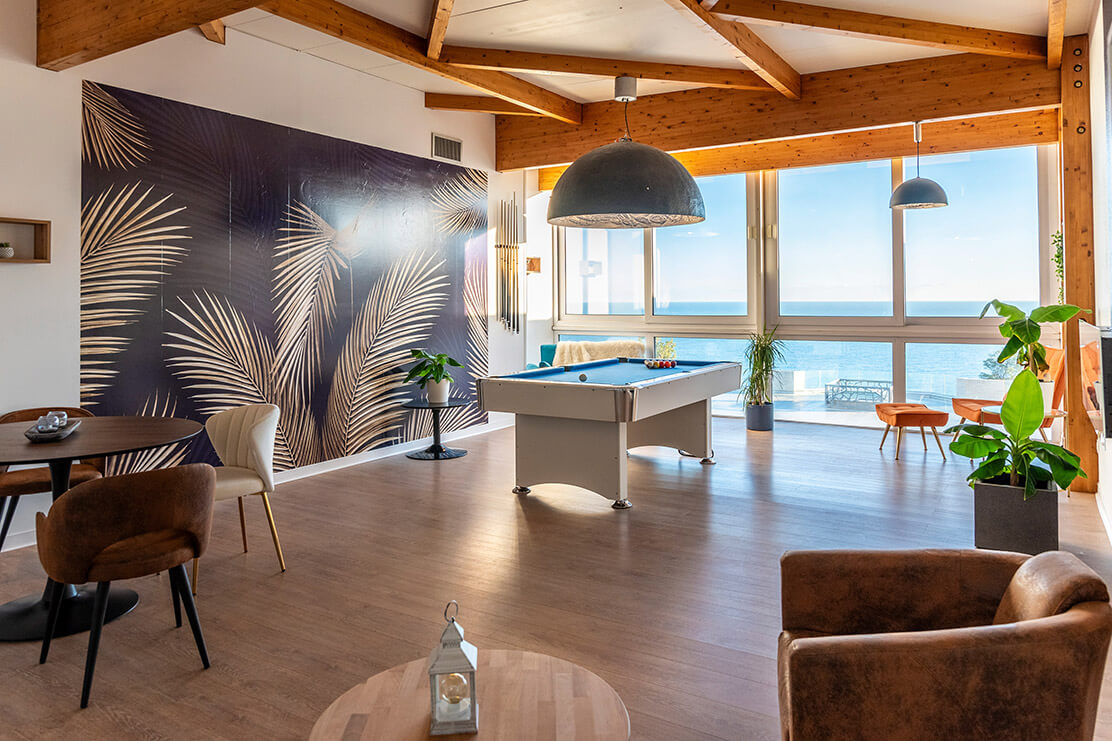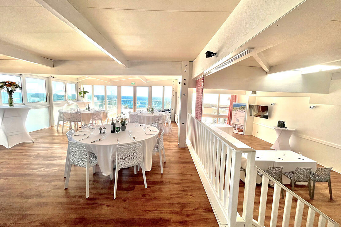 Situé au dernier étage de notre établissement, l’espace Horizon bénéficie de la lumière naturelle et d’une terrasse panoramique vue mer. Elle permet de profiter de 3 espaces contigus avec des configurations modulables.